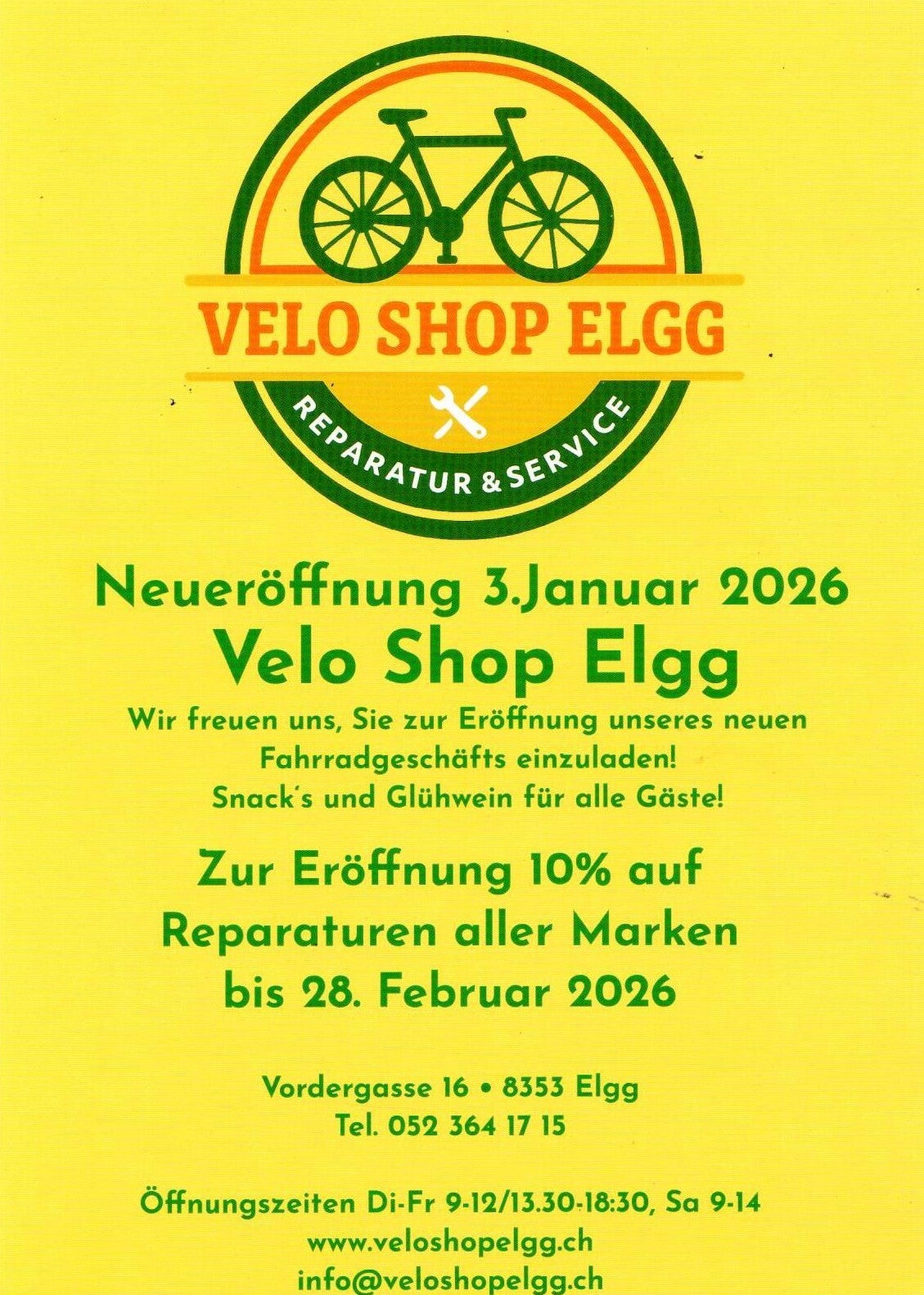 Wir freuen uns darauf, auch im Jahr 2026 für Sie da zu sein – sei es für Reparaturen, Serviceleistungen oder den Kauf Ihres neuen Velos.